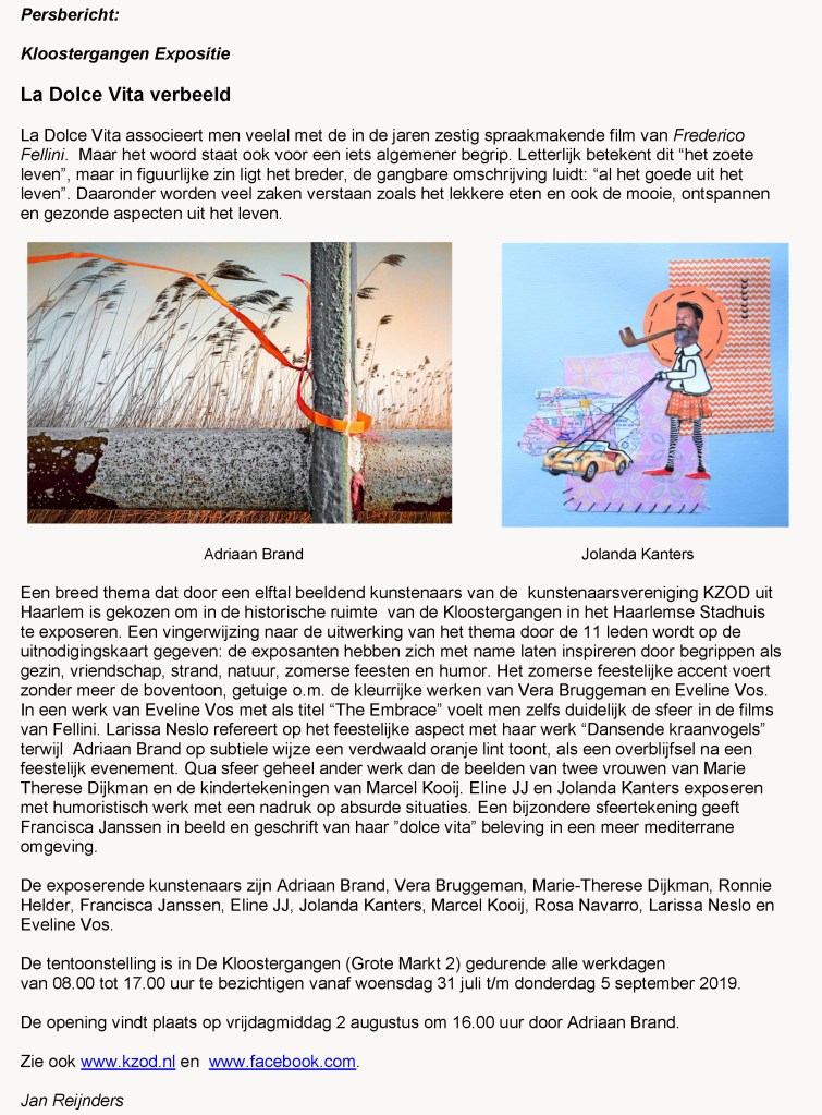 Groepstentoonstelling met KZOD in de Kloostergangen naast het gemeentehuis aan de Grote Markt Haarlem.