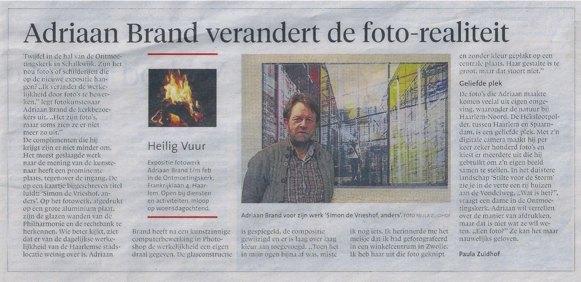 Haarlems Dagblad, 31 december 2014 naar aanleiding van de expositie in de Ontmoetingskerk, Schalkwijk, Haarlem